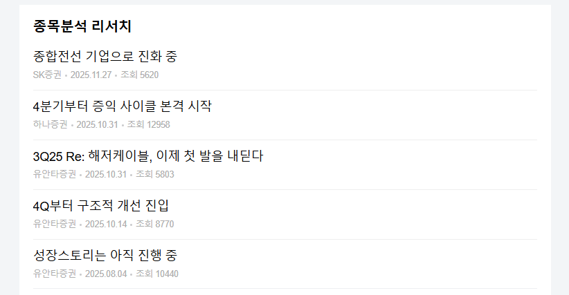 - 2025년 3분기: 동남아 해저 전력망 수주 약 900억 원